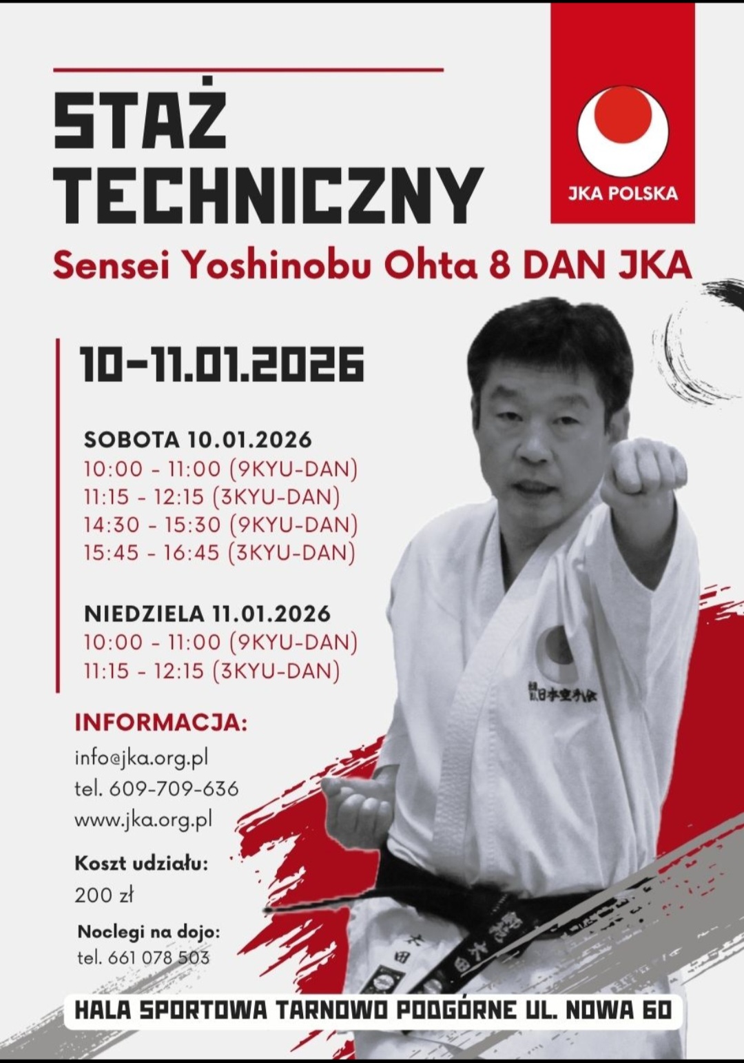 W imieniu Polskiej Federacji Japońskiego Karate mam przyjemność zaprosić Państwa na staż z wybitnym instruktorem JKA Karate – Ohta sensei (8 dan).