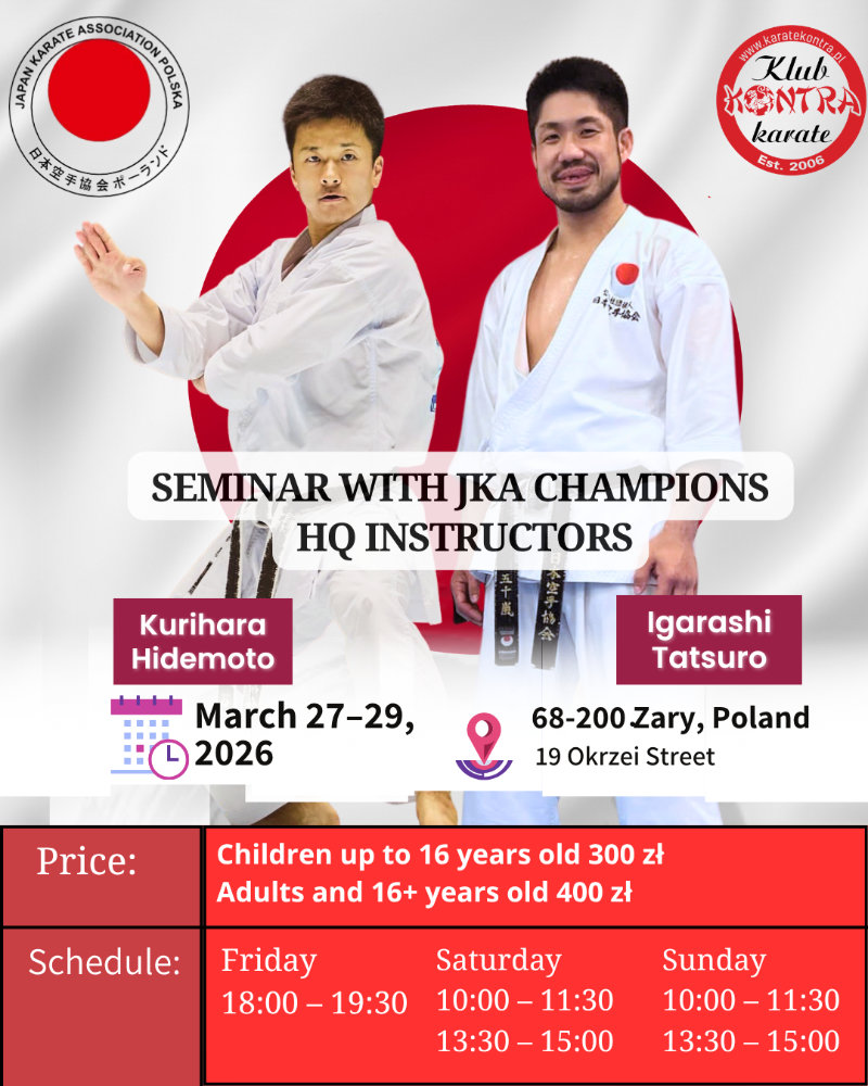 To wyjątkowa okazja do treningu z aktualnymi mistrzami Japonii JKA oraz wicemistrzami świata, reprezentującymi najwyższy poziom techniczny, sportowy i metodyczny w karate JKA.